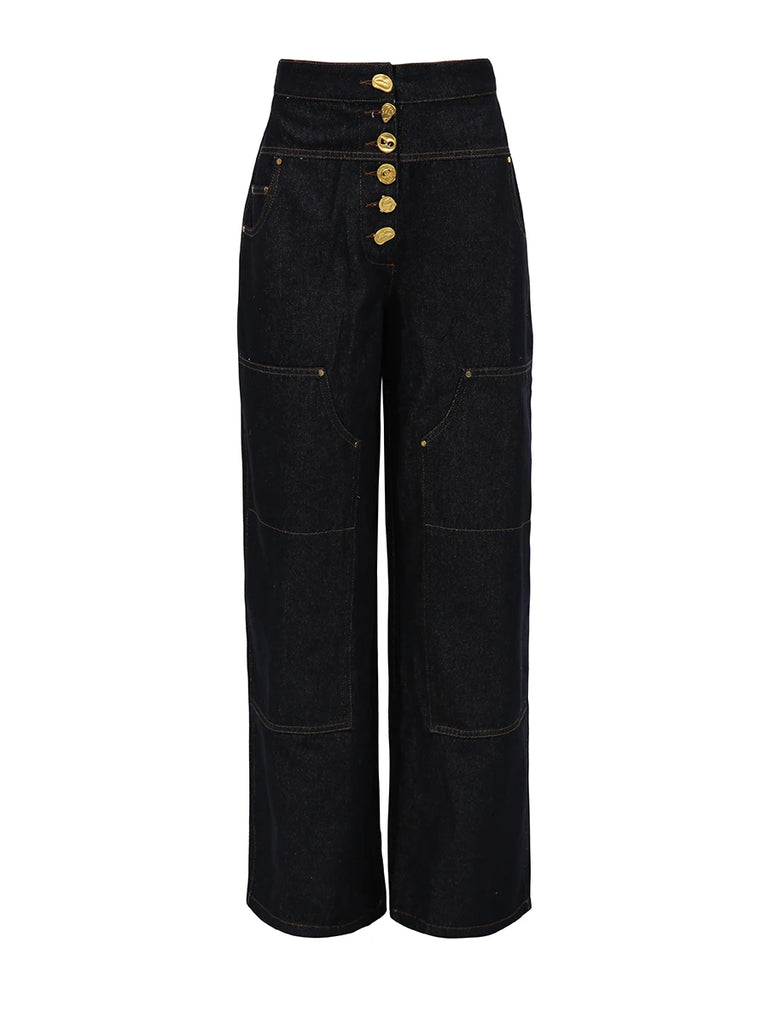 Spliced Button Two Piece Denim Set
