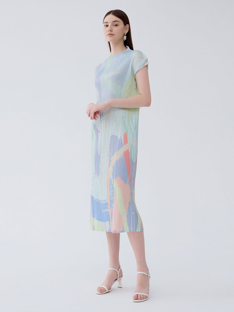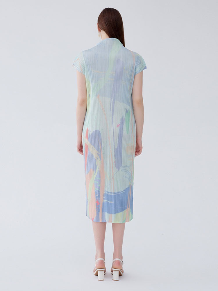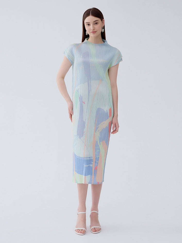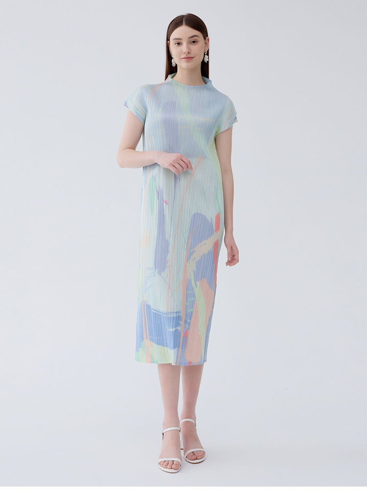 Turn heads with our bright printed slim fit short sleeve half-high neck medium length dress. Designed for women who love bright colorful dresses and stylish seasonal looks, this piece offers a flattering tailored fit with a sophisticated half-high neckline and playful printed design.