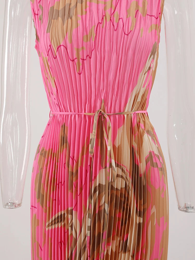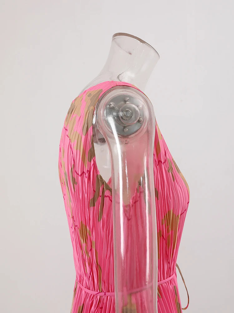 Add a touch of effortless charm to your wardrobe with our bright printed lace-up sleeveless versatile long skirt dress. Perfect for women who love bright colorful dresses and adaptable styling, this piece transitions seamlessly from casual days to elegant evenings.